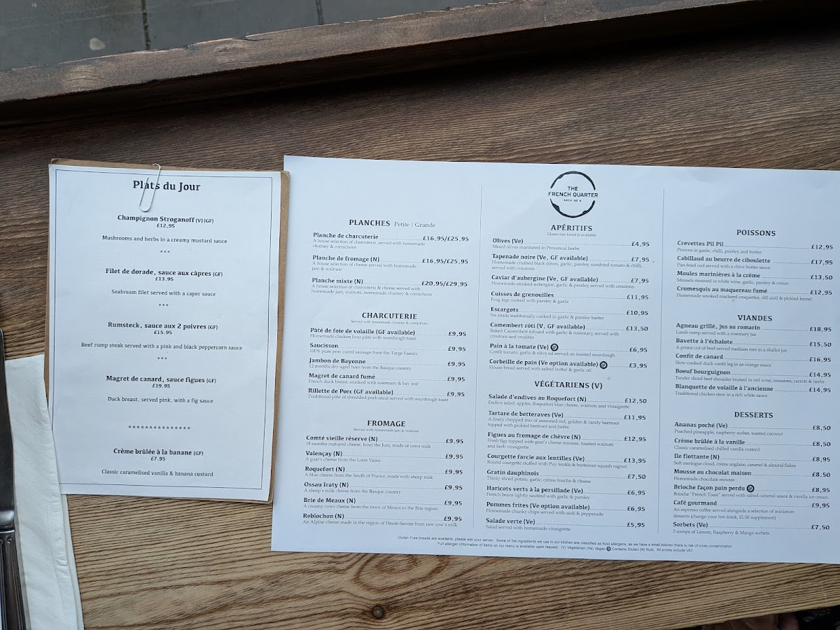 The French Quarter Menu at Arch 6 Westgate Rd, Newcastle upon Tyne NE1 1SA, United Kingdom, presents an authentic slice of France in the heart of the North East. Nestled under the railway arches, this independent bistro captures the relaxed charm of Parisian dining while offering a refined yet approachable menu that celebrates French culinary traditions.